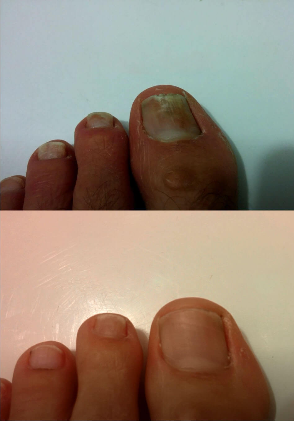 2. Онихомикоза (атлетично стъпало) е една от най-честите микози. Където и да ходят боси, има опасност от заразяване. Спорите на гъбичките могат да понасят както високи (до 100°C), така и ниски (до минус 50-60°C) температури и могат да останат активни в продължение на месеци. Тъй като пациентът потърсил помощ твърде късно, се наложила ампутация.